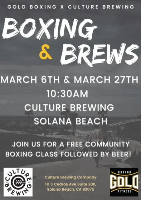 Join us and Golo Boxing Fitness for a one hour free community boxing class followed by some beer drinking before we open to the public.